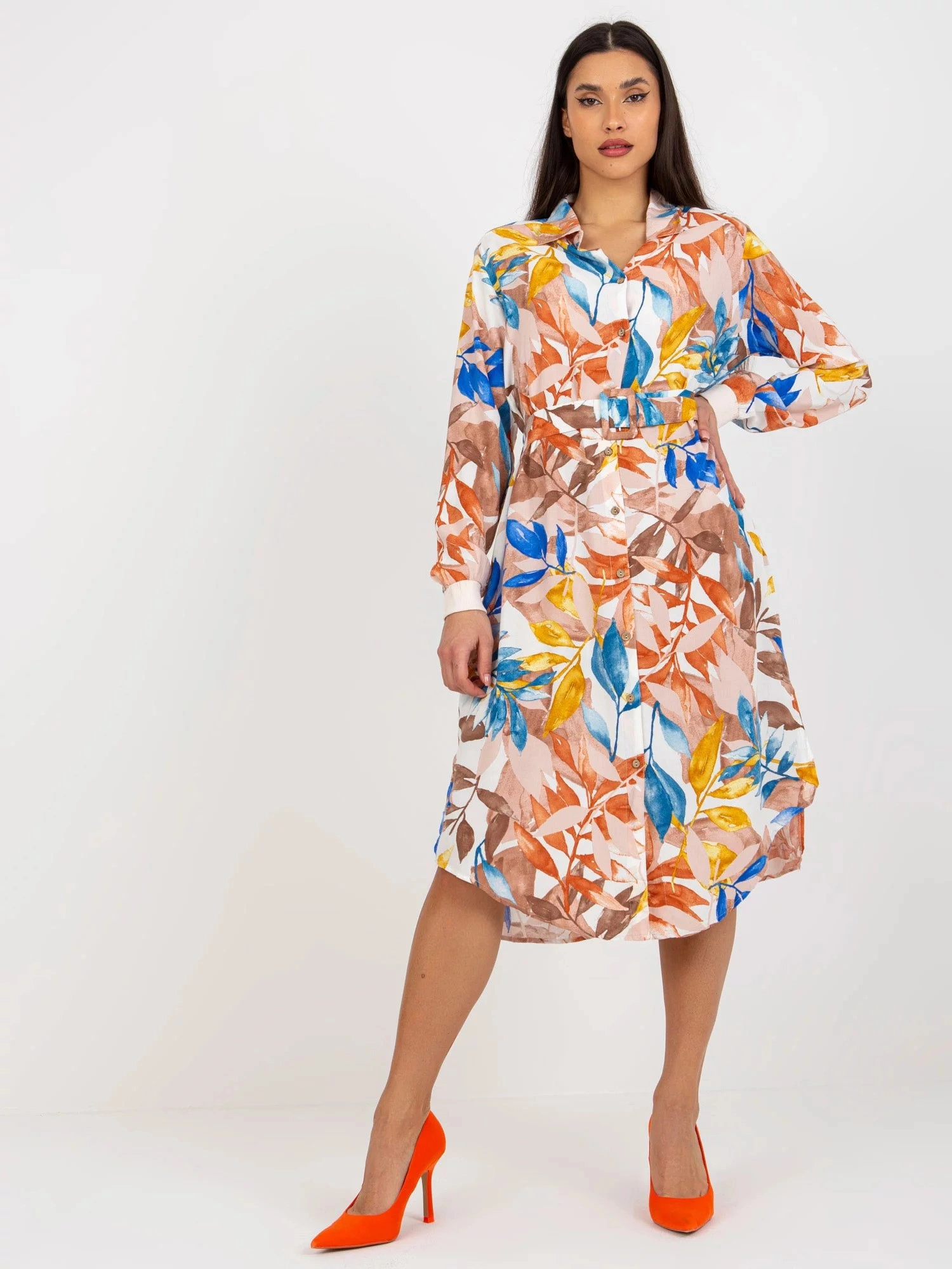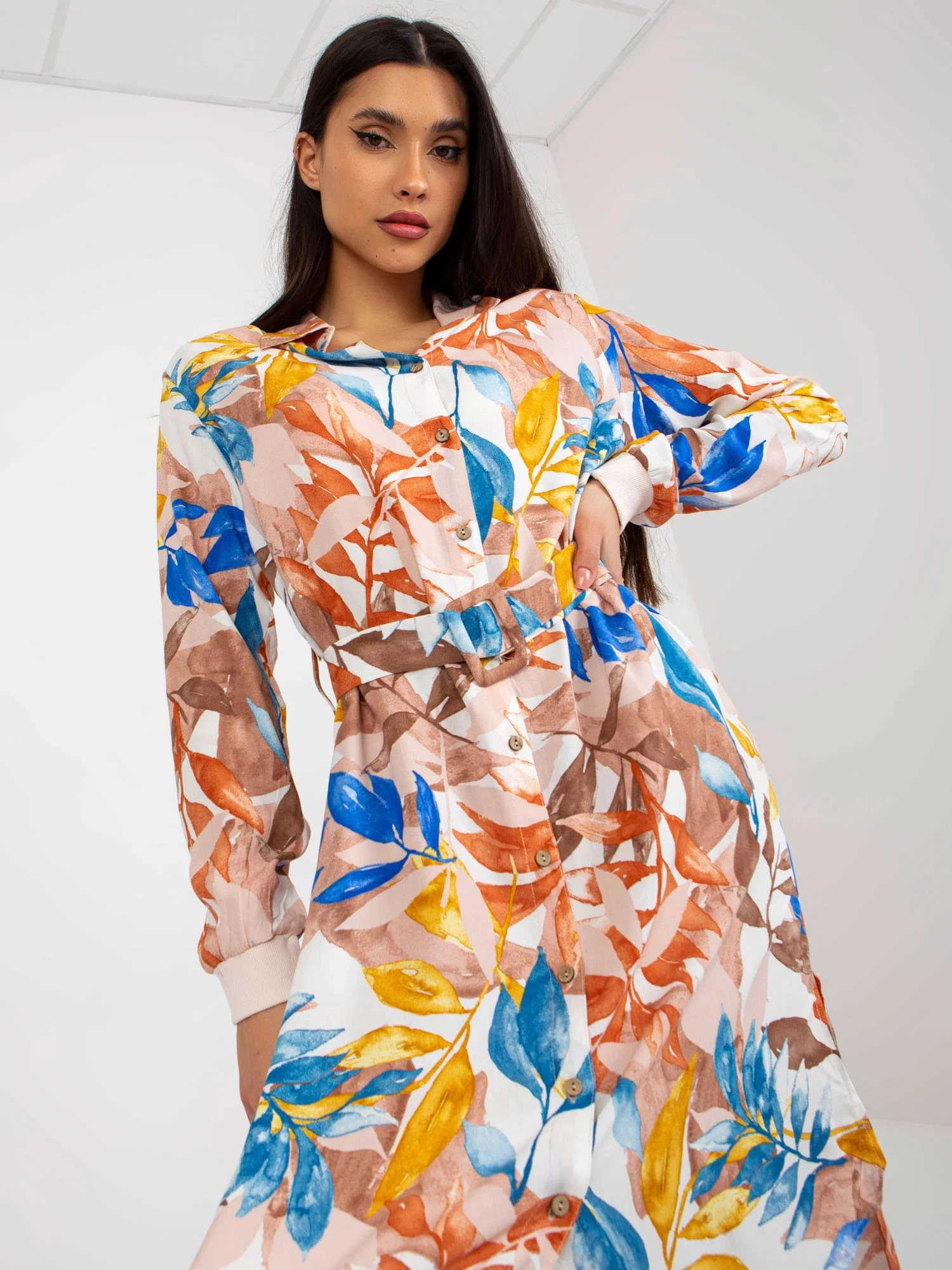 Rozměry šatů v jedné velikosti měřené na plocho: šířka v podpaží - 50 cm, délka rukávu - 58 cm, celková délka - 116 cm.