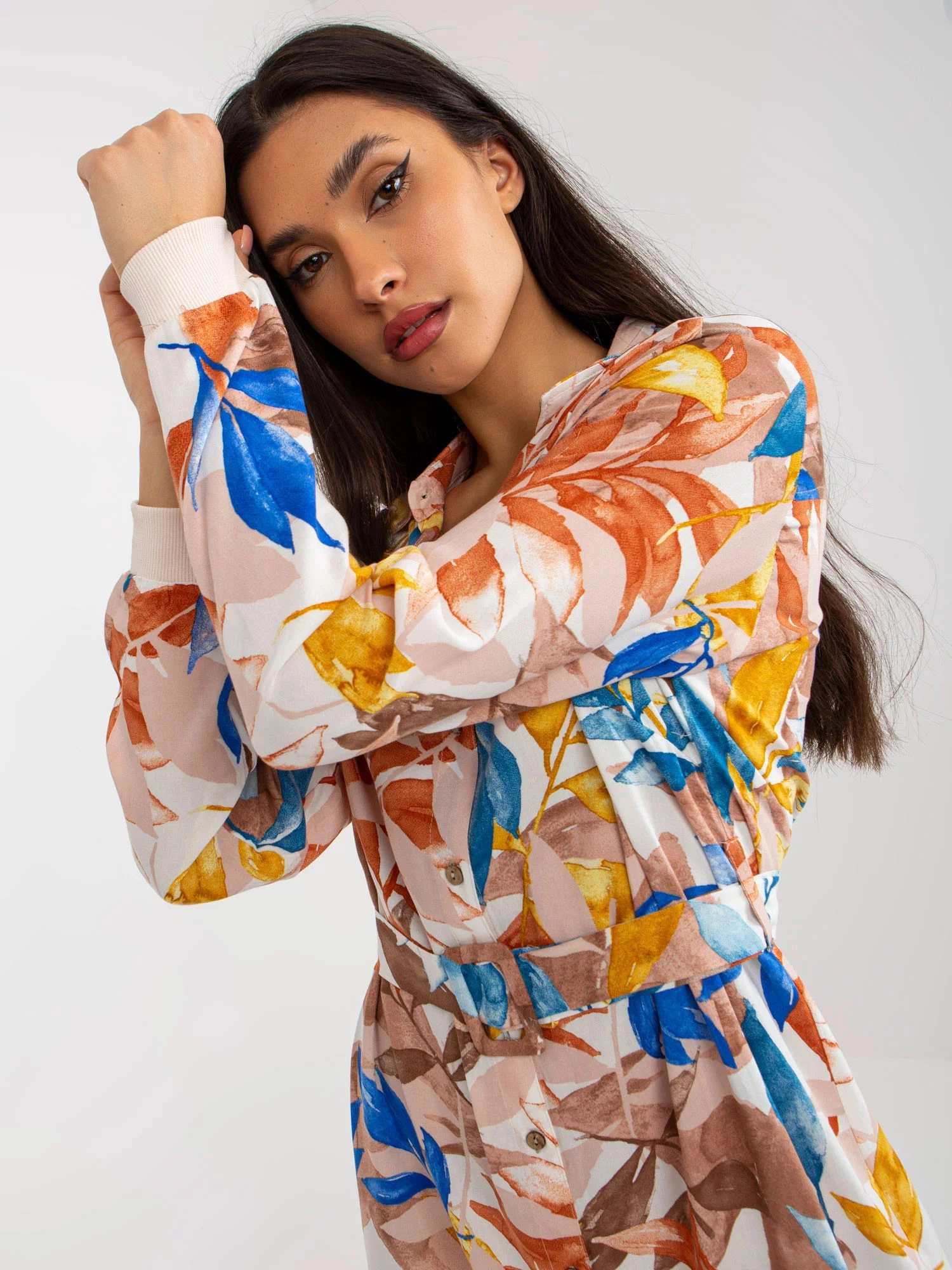 Modelka má na sobě jednu velikost. Rozměry modelky: výška 172 cm, prsa 83 cm, pas 63 cm, boky 91 cm.