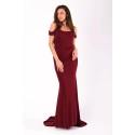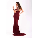 Společenské dámské šaty s vlečkou. Zajímavý model dámských šatů, který má špagetové ramínka. Zajímavým detailem je síťovina pošitá korálky ve stejné barvě šatů, která dělá efekt spadlých ramen. Šaty jsou šité na tělo a zvýrazní tak ženskou postavu. Spodní část je rozšířená. Zadní část šatů odhaluje záda, což přidá na ženskosti. Zapínání je řešeno všitým zipem v zadní části. Oblečte si tyto šaty na ples, do divadla nebo večírek a budete středem pozornosti.