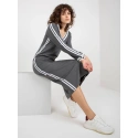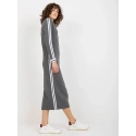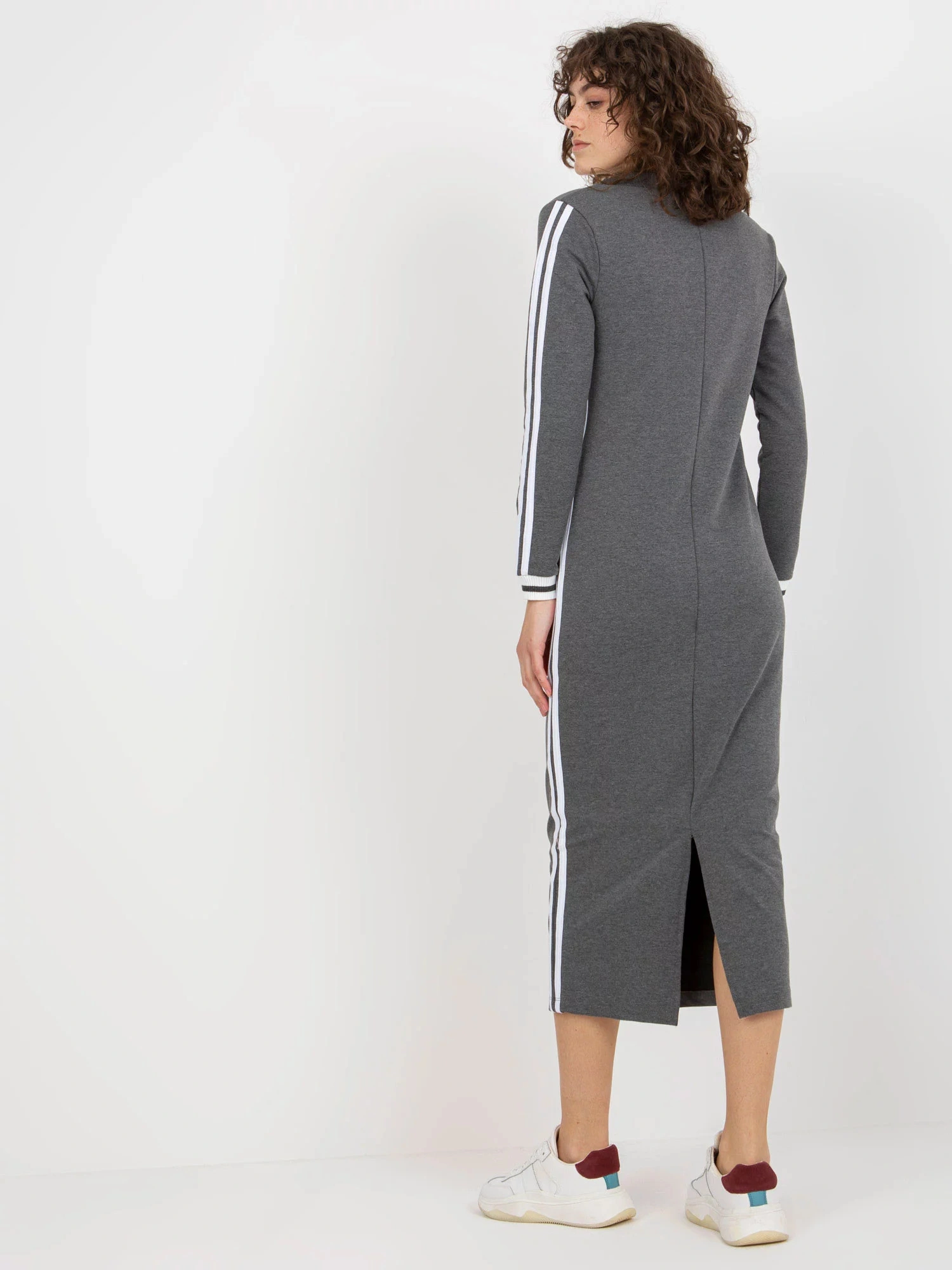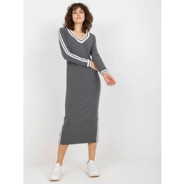 Tmavě šedé midi teplákové šaty s výstřihem do V .