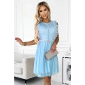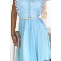 GRETA - dámské šaty s krajkou, tylovou spodní částí a zlatým opaskem.