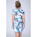 Dámské šaty pro plnoštíhlé. Nádherné šaty v krásných modrých barvách. Tento model šatů má krátký rukávy a kulatý výstřih. Délka šatů je nad kolena. Tento model můžete obléct na letní párty, oslavy či jen tak do města.
