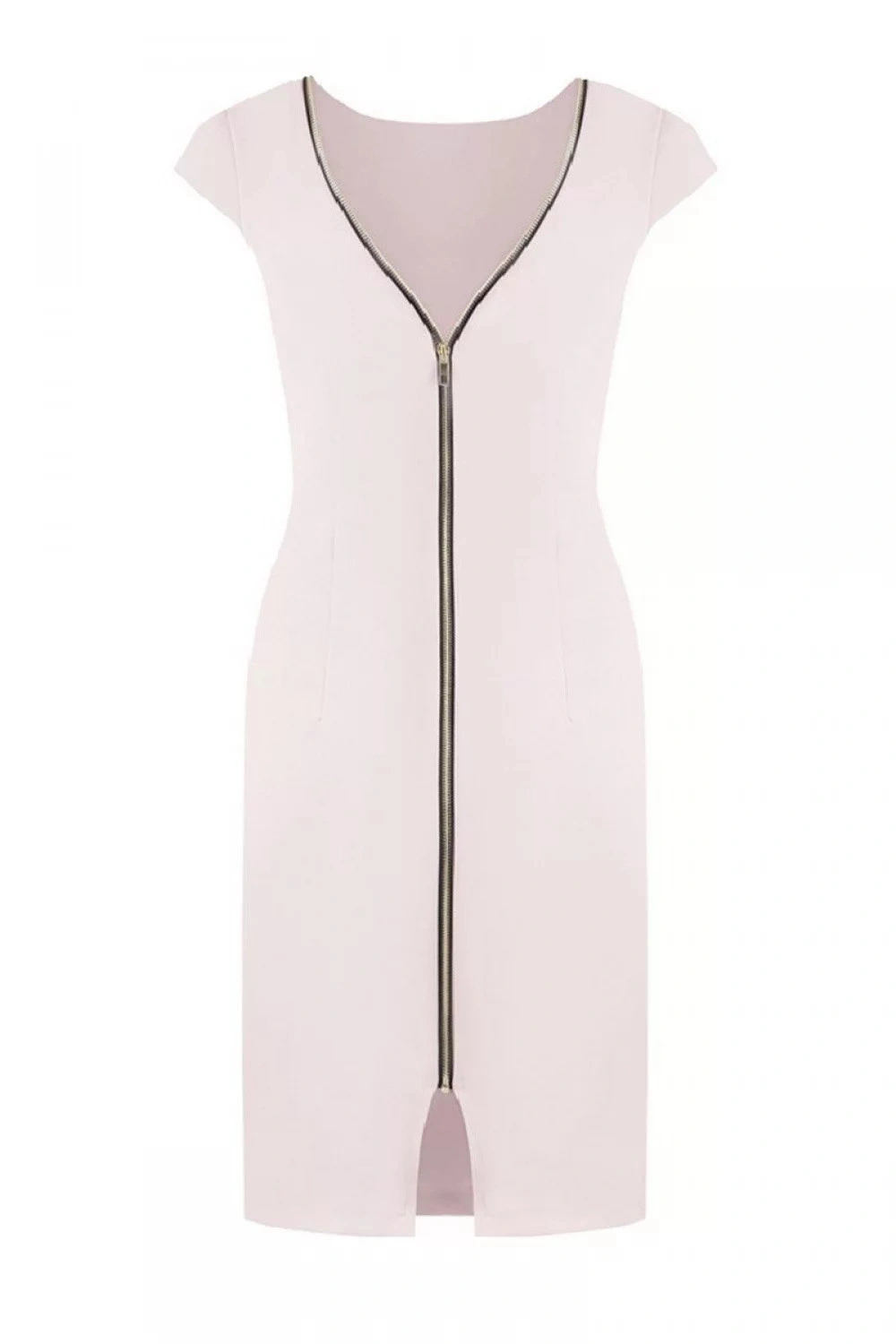 Šaty z měkkého úpletu. Jednoduché a klasické, ale s drápkem. Elegantní zip ve zlaté barvě na zadní straně dělá model jedinečným. Jemné záševky maskují nedokonalosti postavy a zároveň ji zdůrazňují.