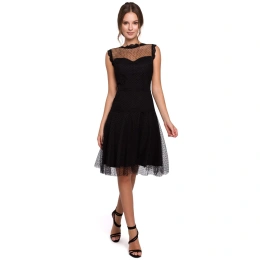 Společenské šaty korzetové značkové MAYAADI s mašlí a sukní s volány černé - Černá - MAYAADI