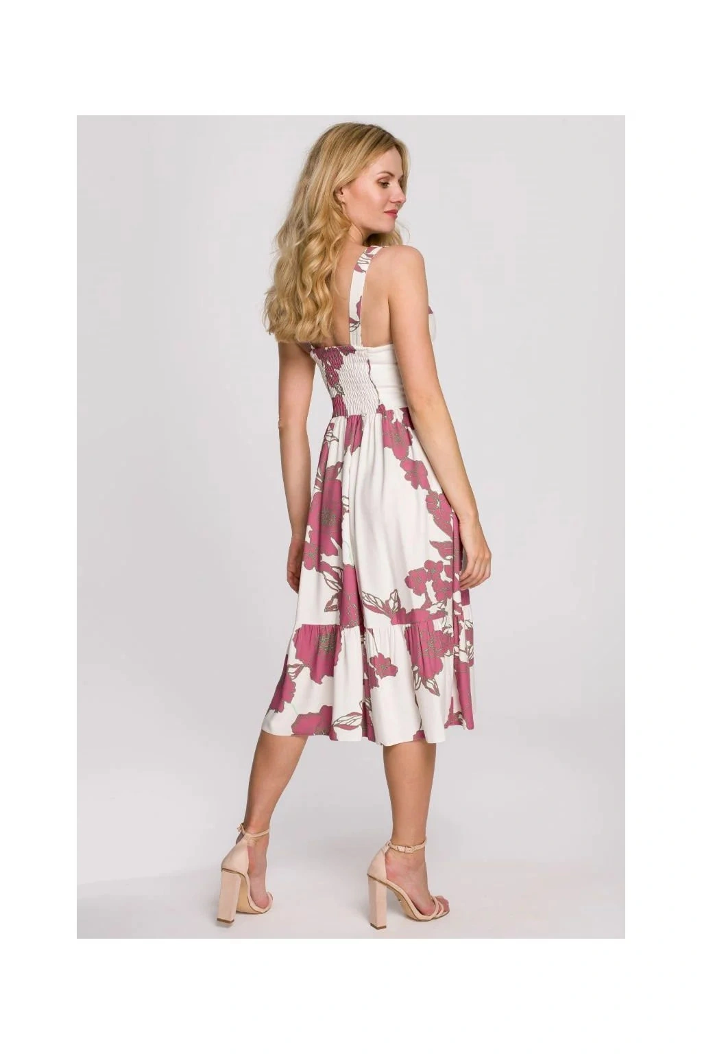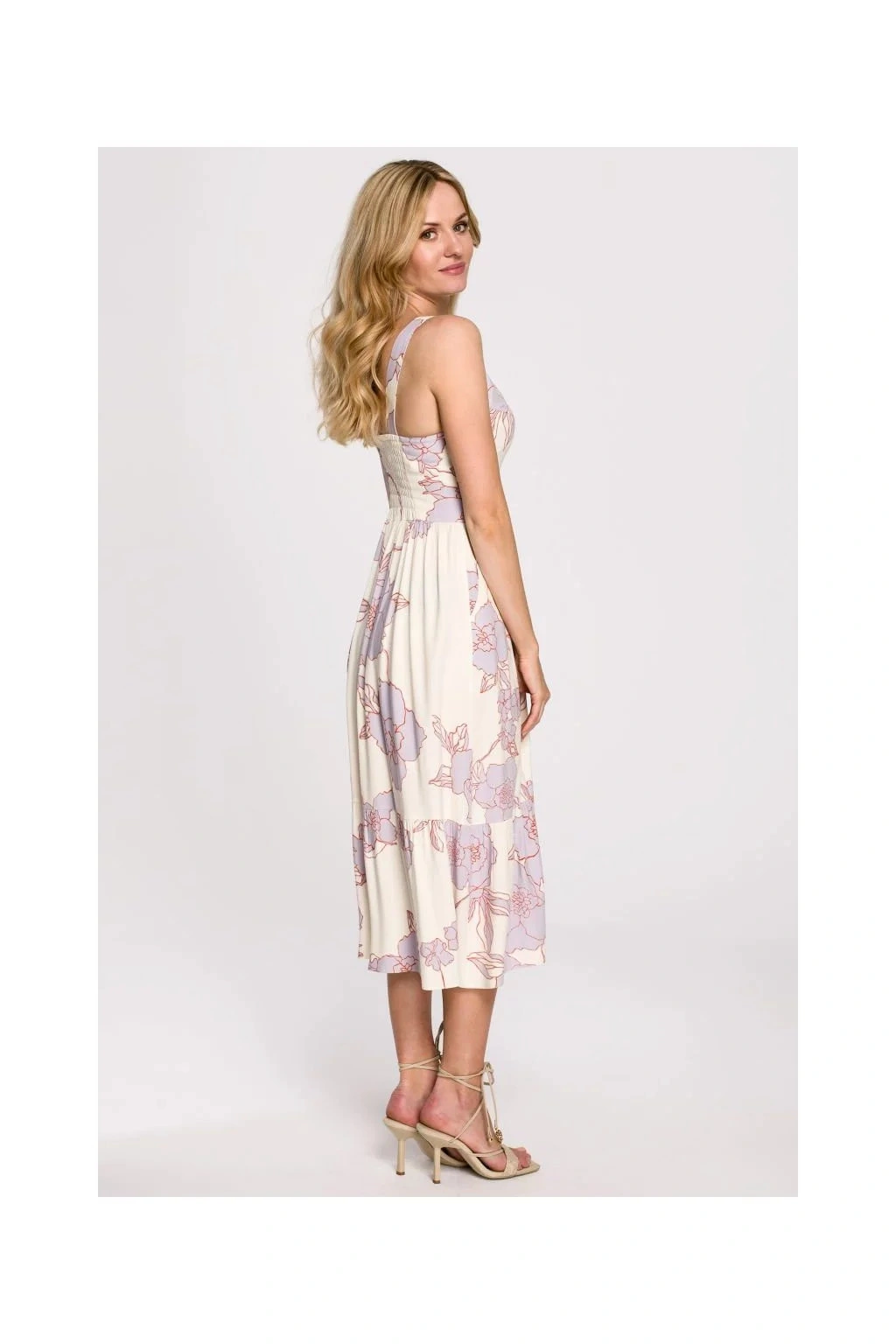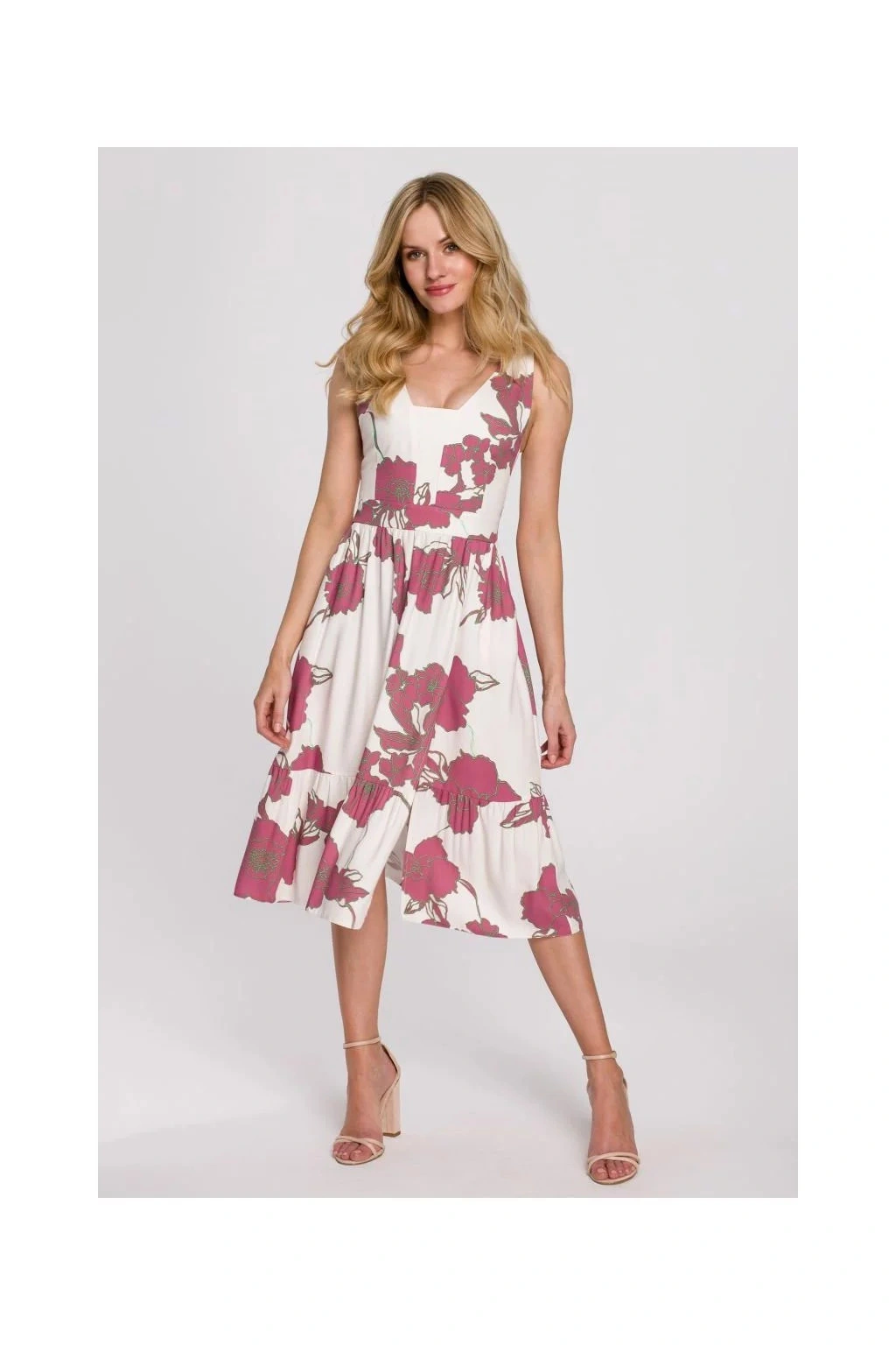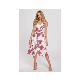 Dámské šaty K098 - Makover S bílá s květinovým vzorem