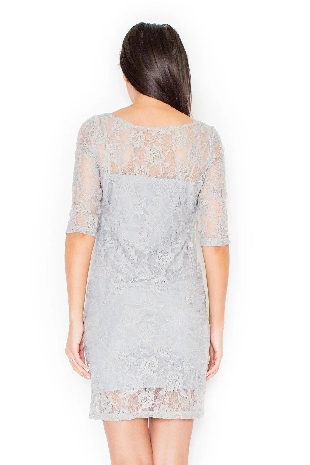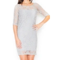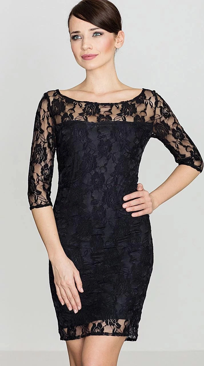 Dámské elegantní šaty M076 FIGL s odhalenými zády. Svrchní část šatů je oživená krajkou. Šaty mají 3