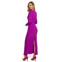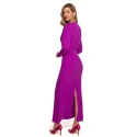 Okouzlující a jedinečné šaty pro zvláštní příležitosti. Hluboký výstřih a objemné rukávy zakončené manžetami s krytými knoflíky. Maxi sukně s jemným rybím copem a poutavým rozparkem na zádech vás potěší při pohybu. Šaty jsou bez podšívky a zapínají se na krytý zip.