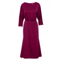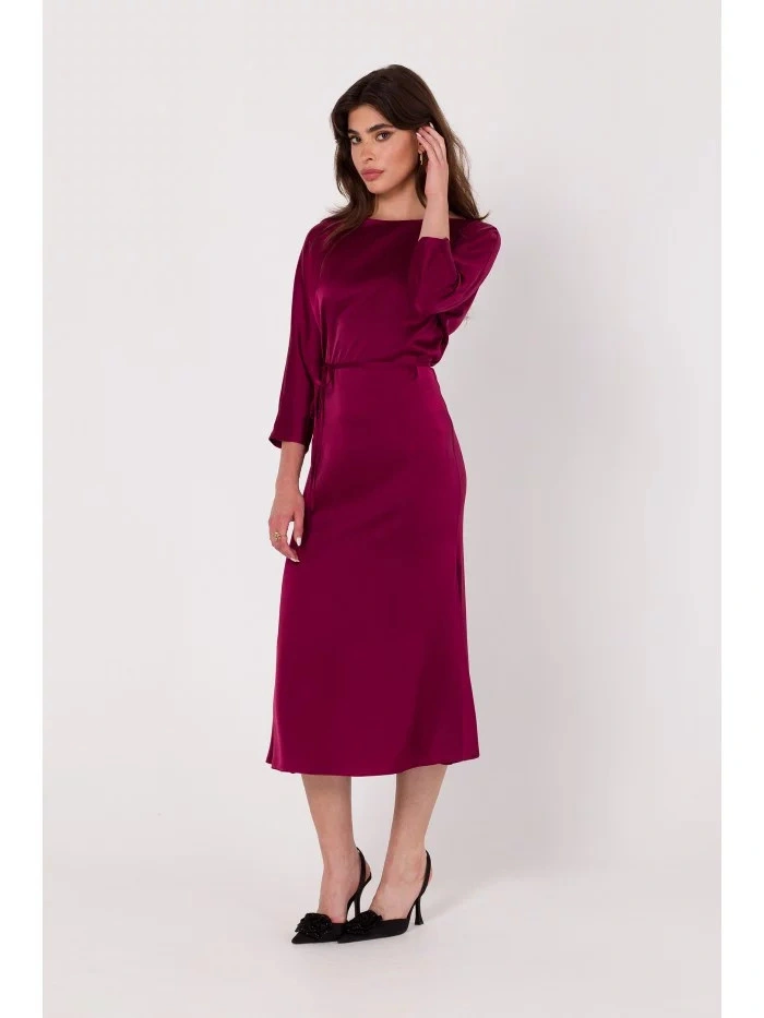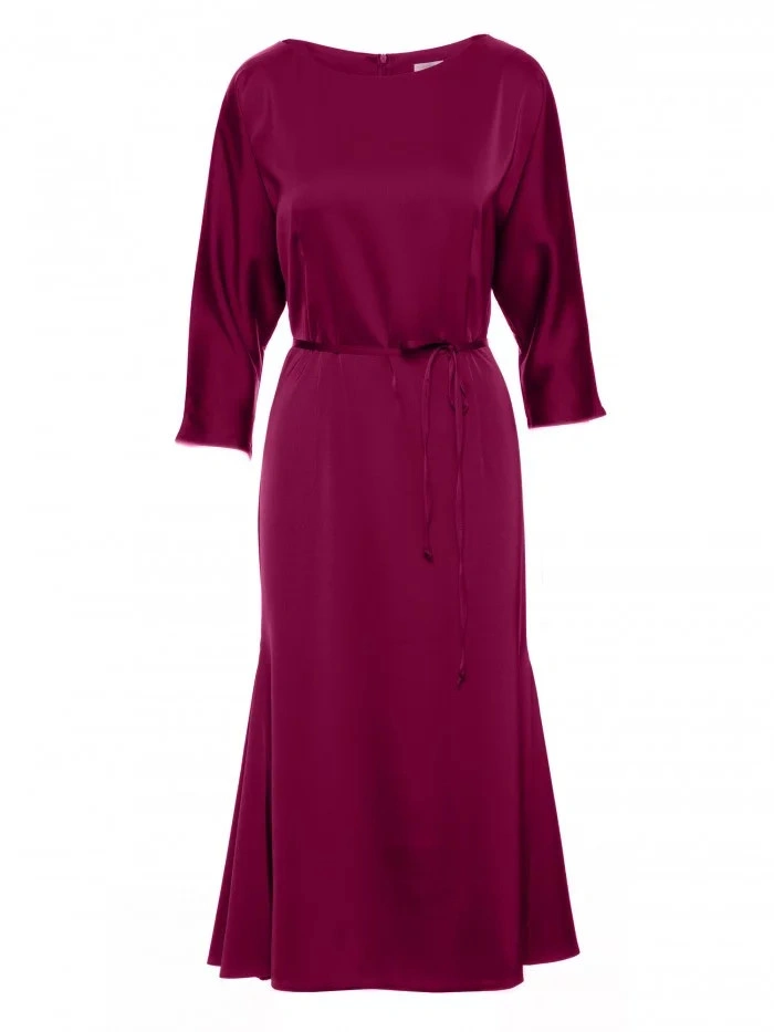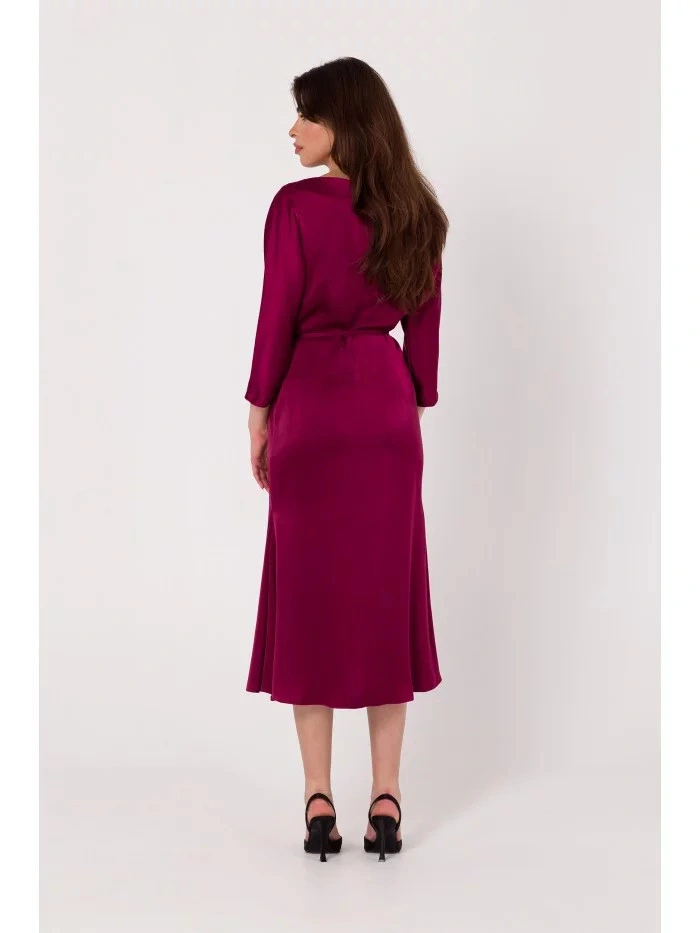 98 % polyester 2 % elastan DETAILY VÝROBKU: tkaný satén tříčtvrteční netopýří rukávy midi délka bateau výstřih tenký vázaný v pase skrytý zip na zádech bez podšívky Naše modelka je 168 cm vysoká a nosí velikost S Navrženo a vyrobeno v Polsku