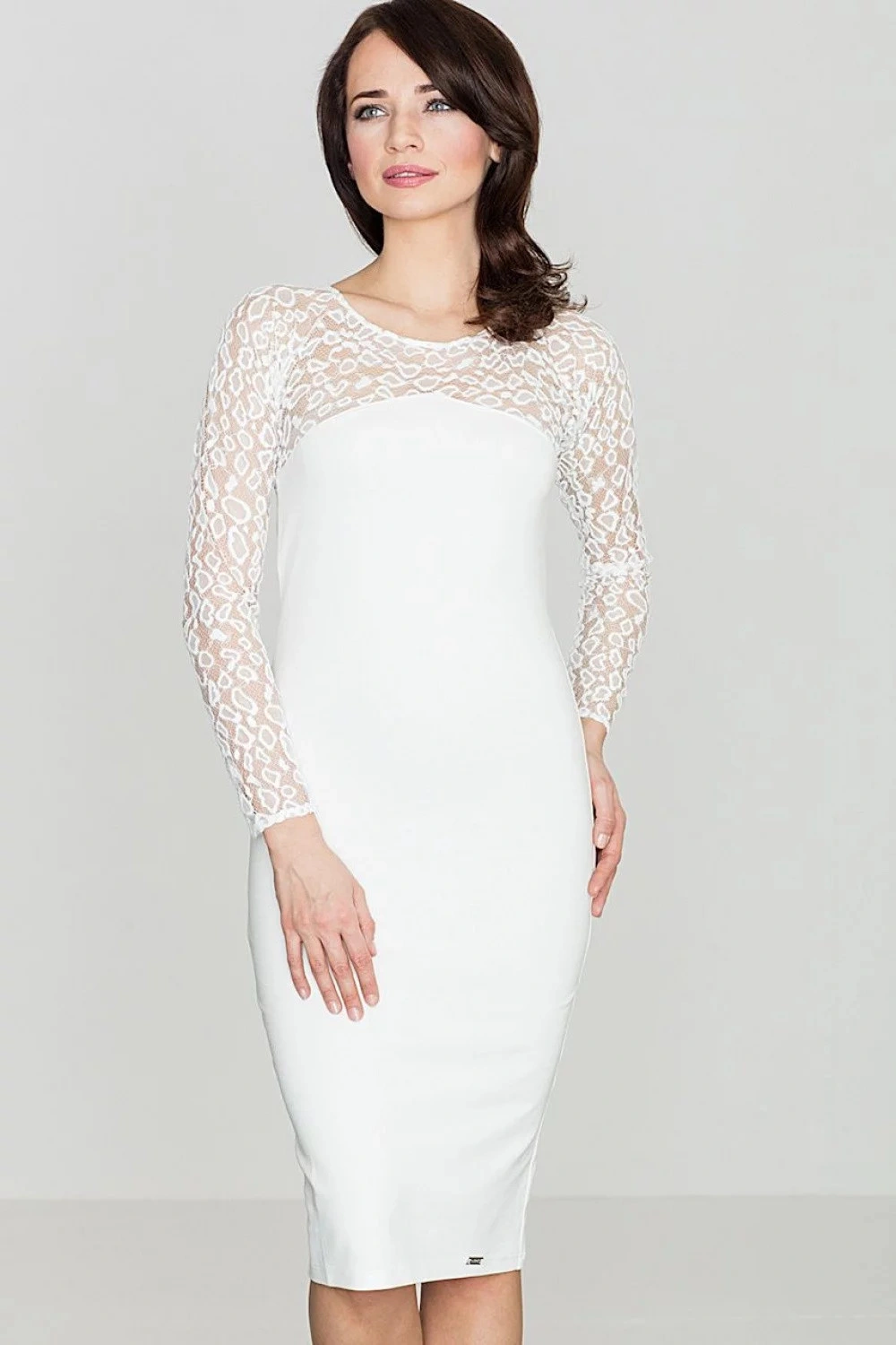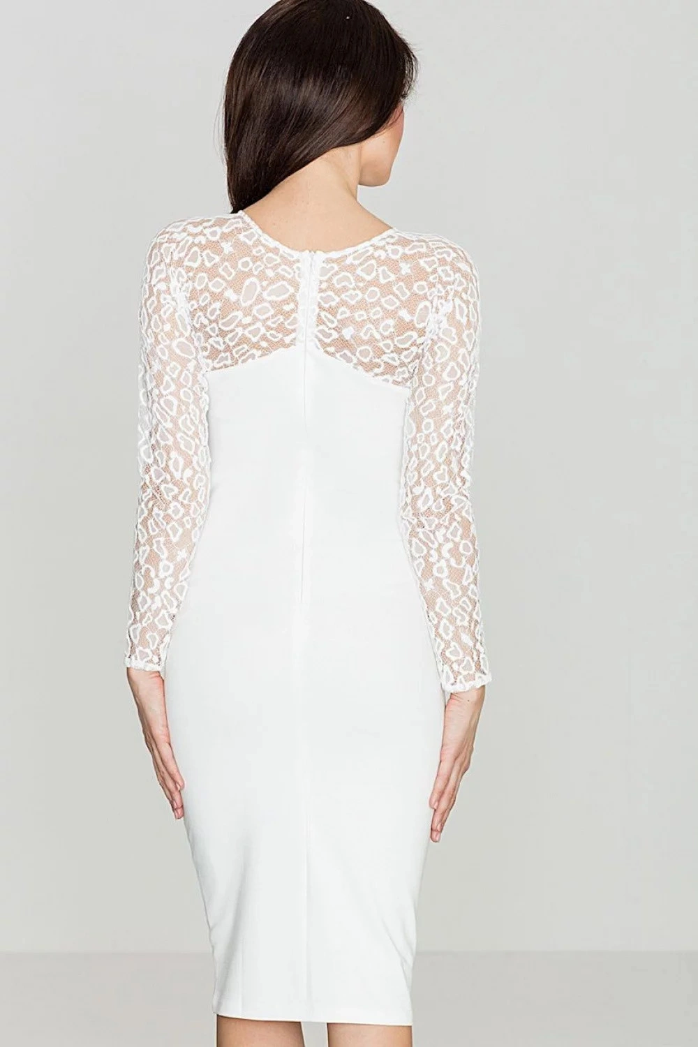 Dámské elegantní šaty M076 FIGL s odhalenými zády. Svrchní část šatů je oživená krajkou. Šaty mají 3