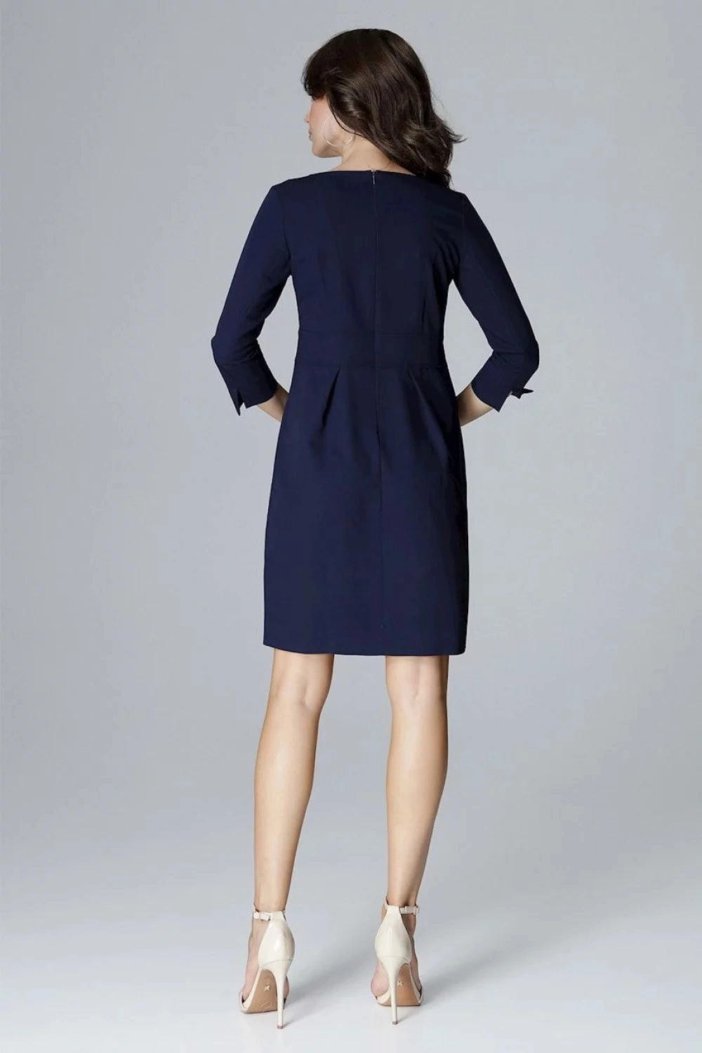 Tužkové šaty s 3/4 rukávy, výstřih zdobený límečkem. Ideální pro každodenní nošení i do práce. Elast