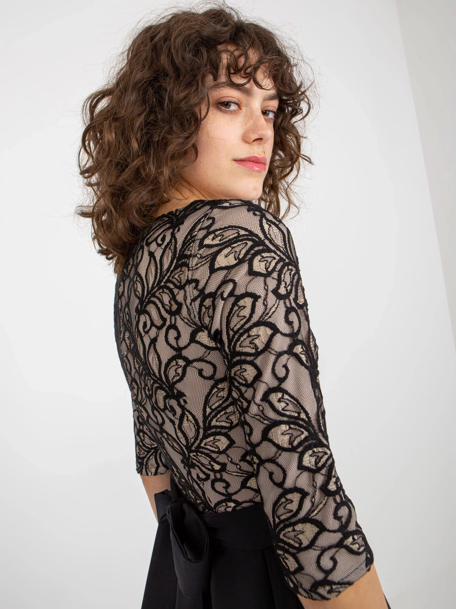 Modelka má na sobě velikost 36. Rozměry modelky: výška 177 cm, poprsí 84 cm, pas 62 cm, boky 89 cm.