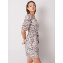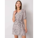 Pudrově růžové vzorované šaty s páskem.