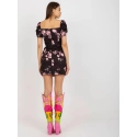Černo-růžové koktejlové mini šaty s potiskem.
