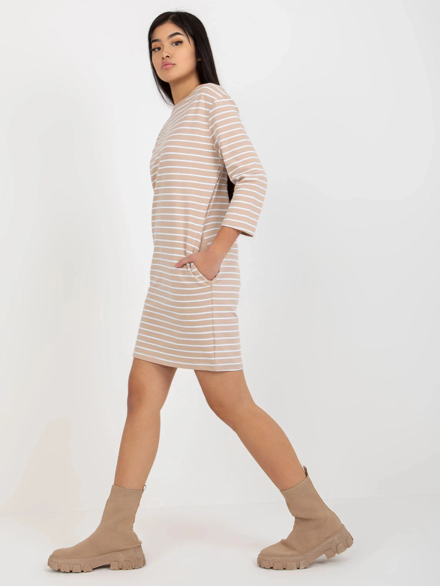 Béžovo-bílé šaty s kapsami RUE PARIS .