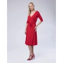 Smyslné obálkové šaty, které zdůrazní vaši postavu. Můžete si ho naaranžovat a obléknout podle libosti. Sami se rozhodnete, jak hluboký chcete mít výstřih, jak vysoký by měl být pas, můžete si upravit jeho délku a způsob střihu, zda bude více přiléhat k tělu, nebo bude mírně volnější. Vyrobeno z pružné, stabilní viskózové tkaniny v krásné červené barvě.
