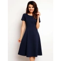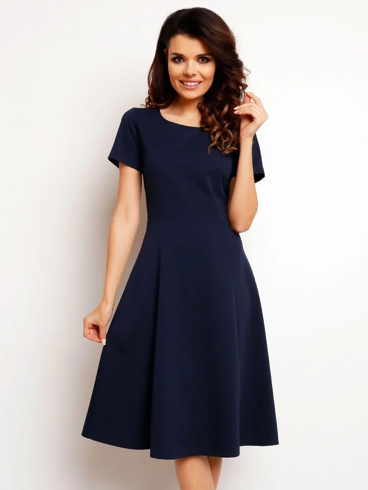 Midi šaty s 3/4 rukávem staženým v pase. Spodní část šatů je mírně rozšířená a horní část více přilé