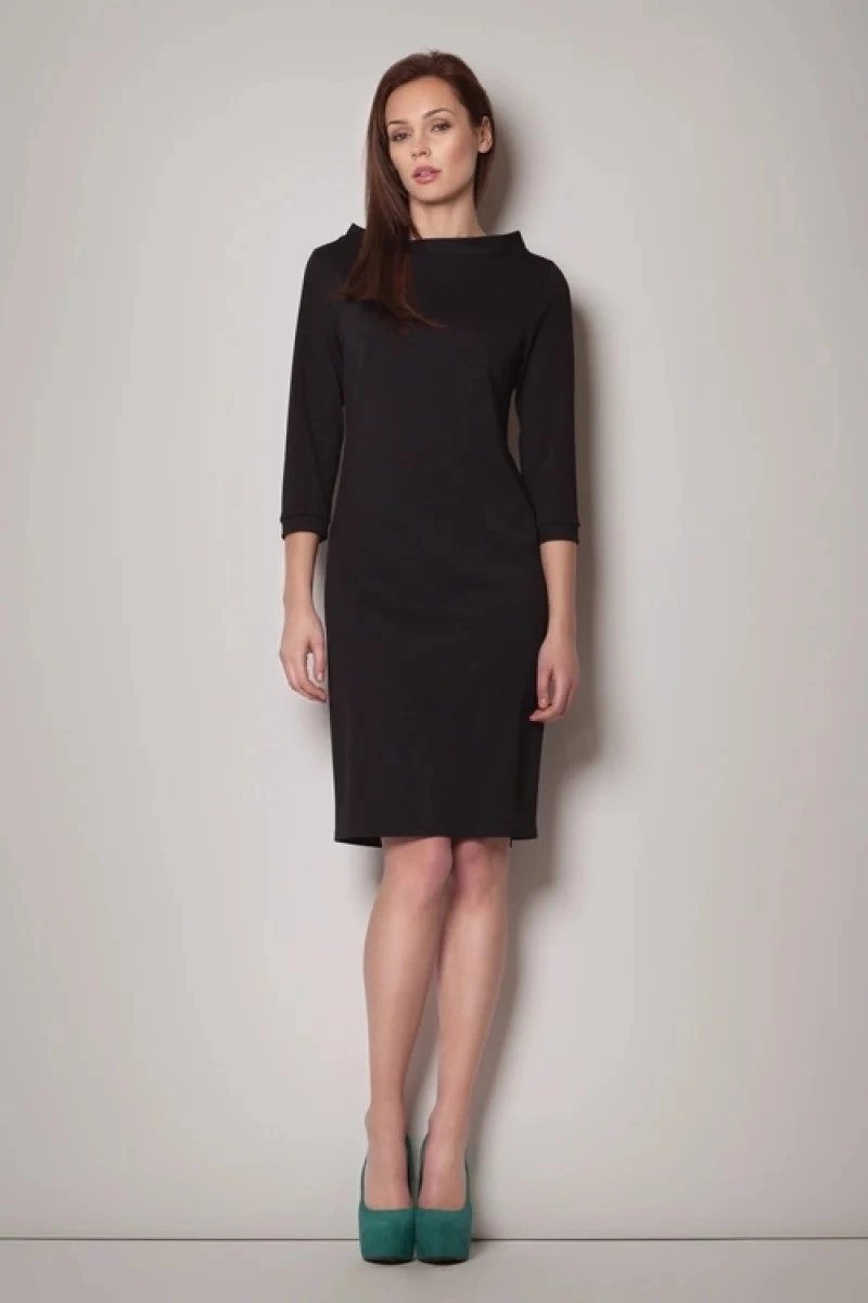 Dámské elegantní šaty M202 FIGL jsou jednoduchého střihu s 3/4 rukávy. Šaty jsou perfektního s střih