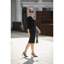 Šaty s odnímatelným řetízkem. Každé očko řetízku má zářez, takže jej lze odepnout nebo zkrátit (míří se na zářez). Vyrobeno z měkkého, pružného úpletu typu MORGAN. Rukávy 3/4 s ozdobnou sponou. Tento promyšlený střih poskytuje pohodlí ženám všech velikostí. Bez podšívky..