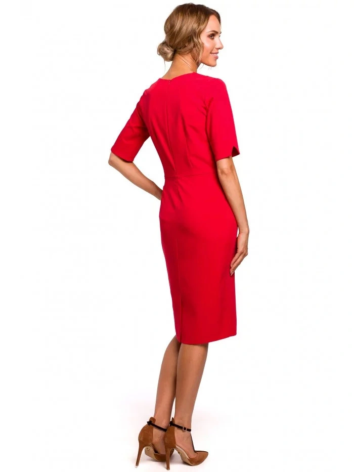 Jasné linie - tužkové šaty s výstřihem ve tvaru písmene V s průstřihy. Je to jemný kancelářský styl ve své nejčistší podobě. PODROBNOSTI O PRODUKTU: pouzdrové šaty z tkané látky s krátkými rukávy a výstřihem do V s ozdobnými průstřihy délka ke kolenům skrytý zip na zádech bez podšívky naše modelka je vysoká 171 cm a nosí velikost S