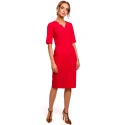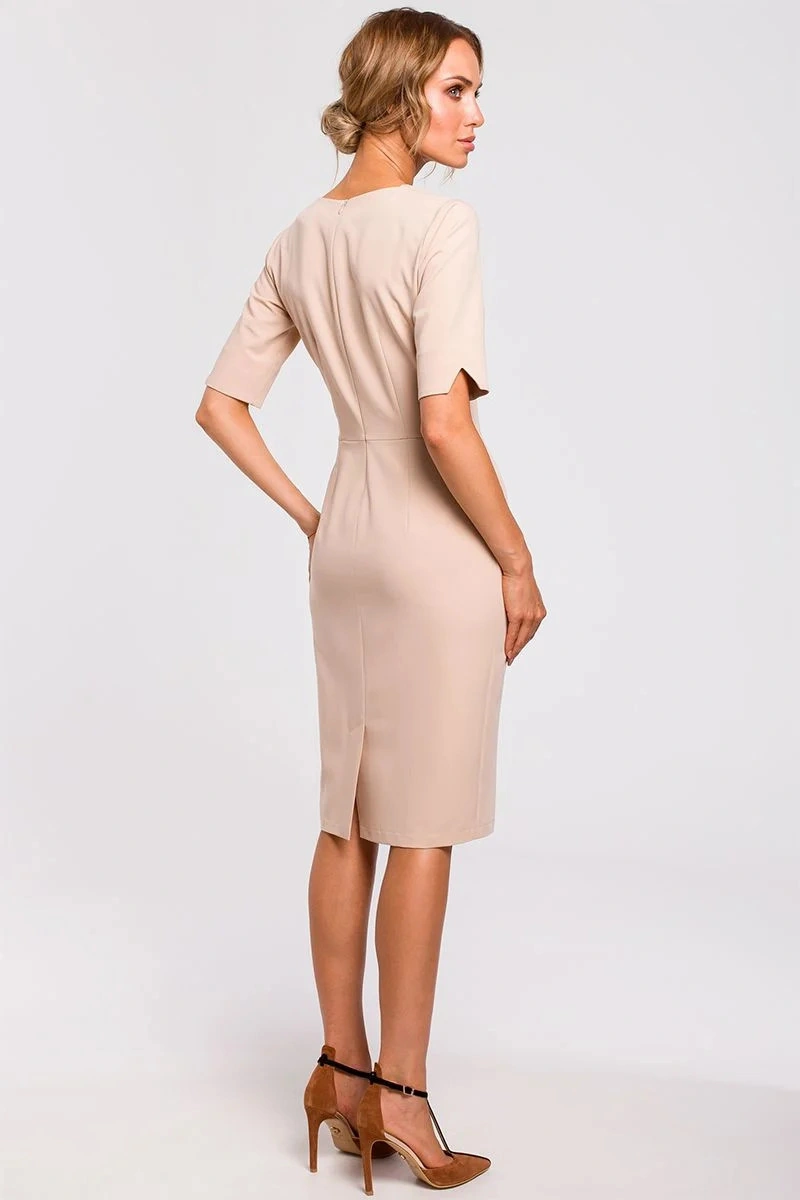 Jemné a elegantní tužkové šaty se zvýšenou linií pasu a výstřihem do V s průstřihy. Šaty s krátkými rukávy, zapínané na krytý zip. Šaty bez podšívky. Jemný kancelářský styl v té nejlepší podobě.