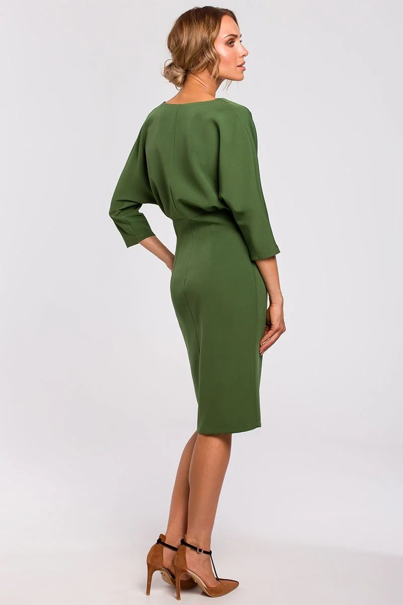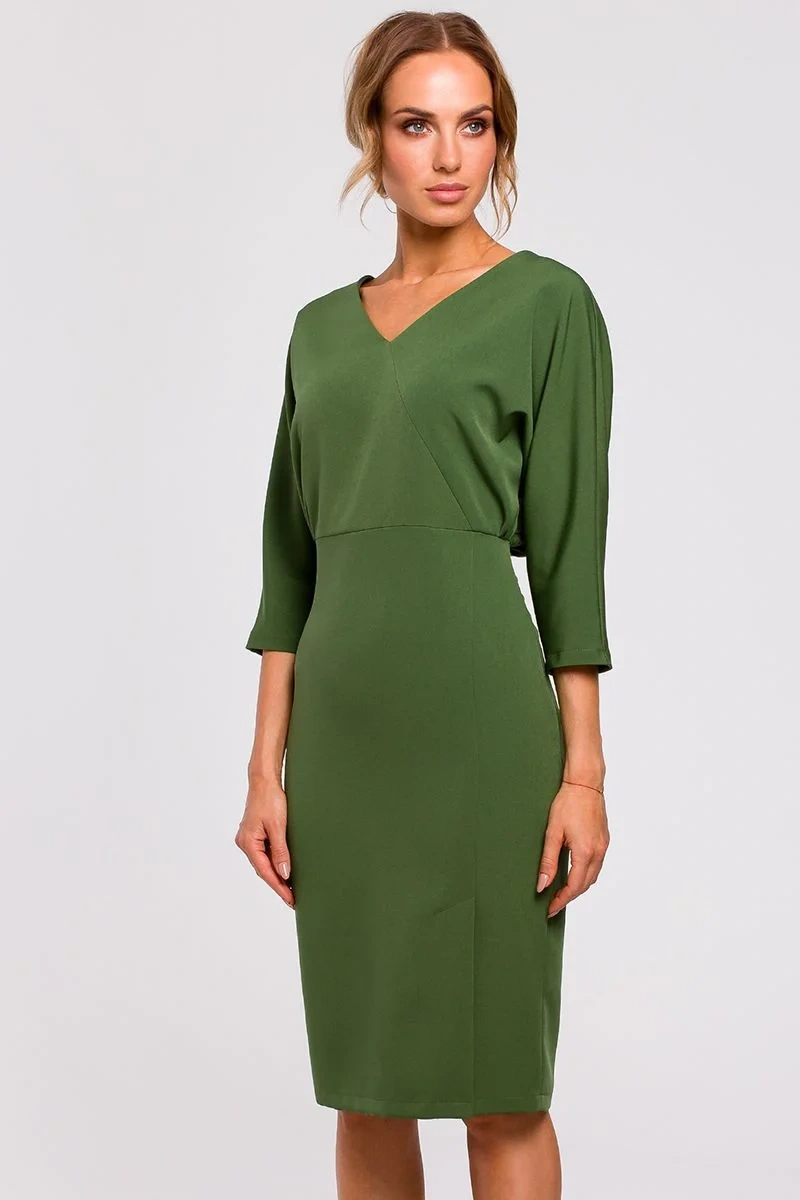 Dámské šaty - šaty s dlouhými rukávy, výstřihem do V a přiléhavým střihem - dokonale zdůrazňují post
