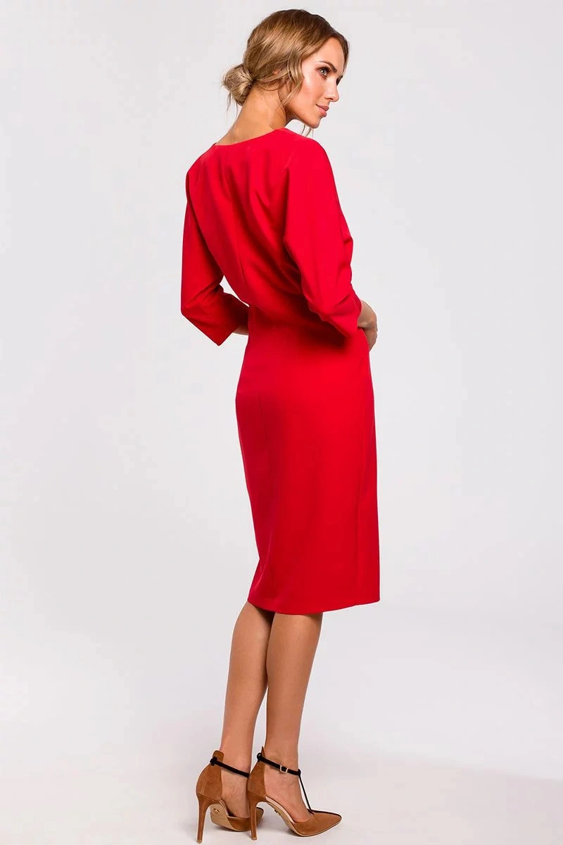 Šaty s vysokým rozparkem S385 červené - Moe