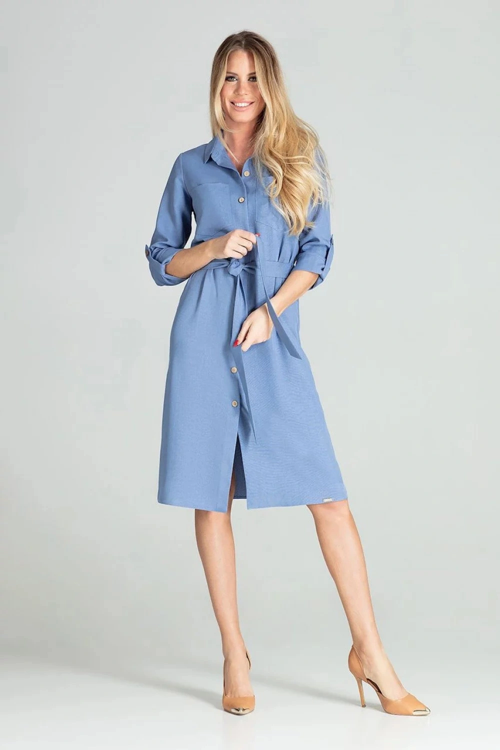 Dámské šaty M703 - Figl L-40 jeans-modrá