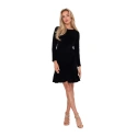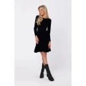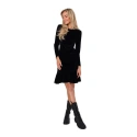 INFORMACE O PRODUKTU: pletenina - sametové šaty s volánkovým spodním lemem přetažené přes hlavu dlouhé rukávy nad kolena délka bez podšívky naše modelka je vysoká 171 cm a nosí velikost S Navrženo a vyrobeno v Polsku