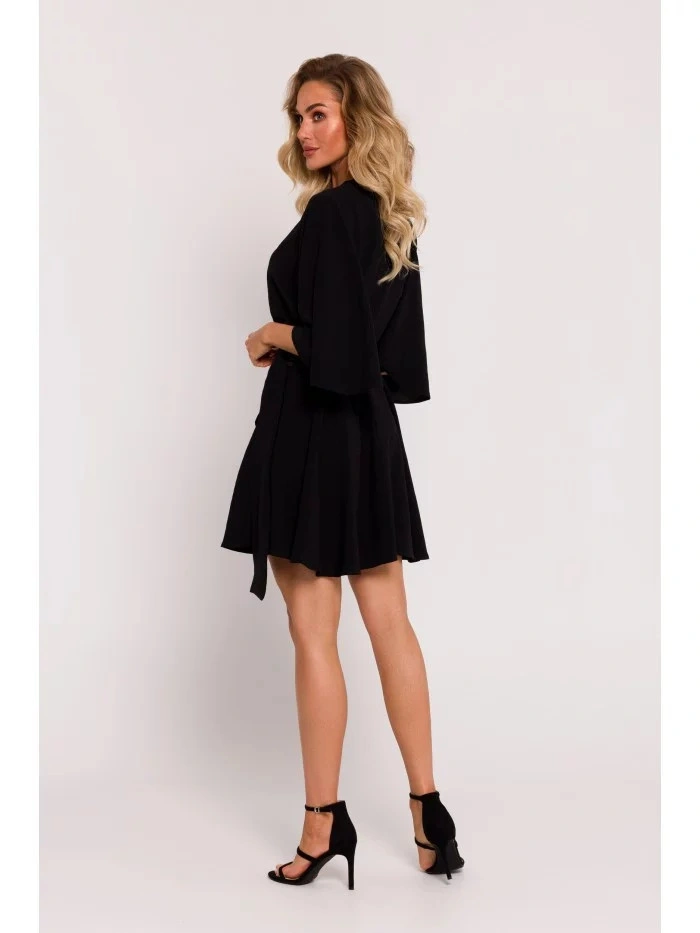 INFORMACE O PRODUKTU: tkaná krepová tkanina mini délka šatů se zavazováním ve výstřihu řasení vpředu zakončené volánkem krátké elastické rukávy skrytý zadní zip bez podšívky naše modelka měří 171 cm a nosí velikost S navrženo a vyrobeno v Polsku
