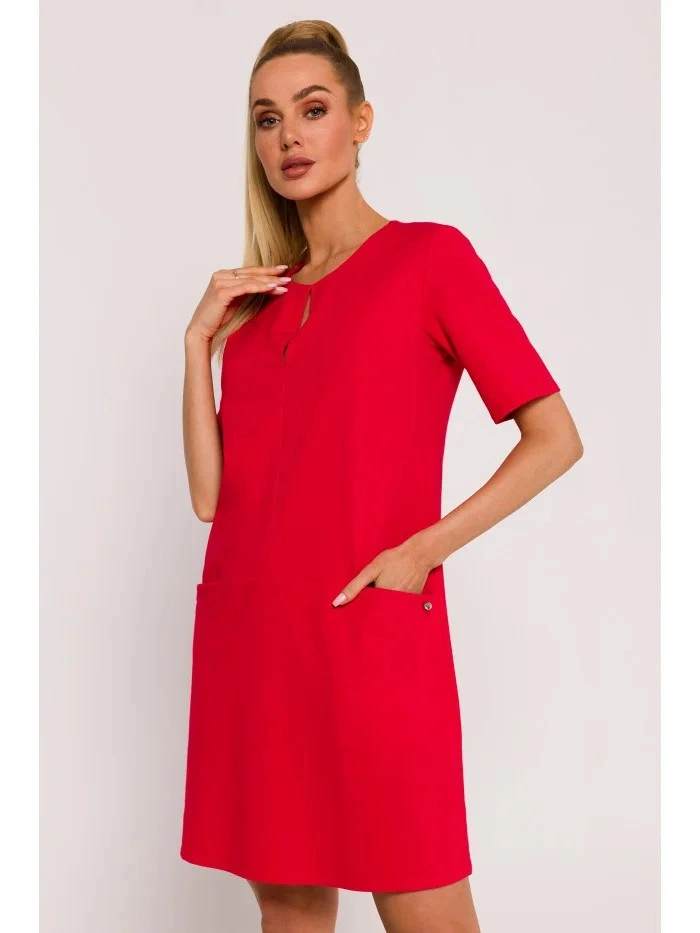 INFORMACE O PRODUKTU: úpletová tkanina áčkové šaty s krátkými rukávy výstřih s klíčovou dírkou přední kapsy ve švu s ozdobným odznakem s logem bez podšívky naše modelka je vysoká 171 cm a nosí velikost S navrženo a vyrobeno v Polsku