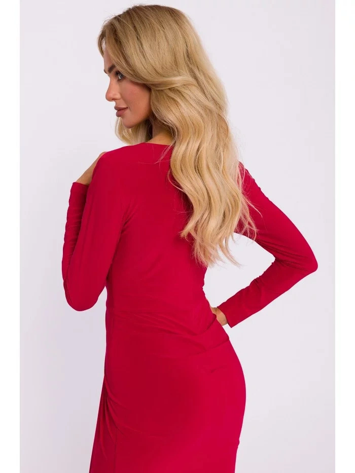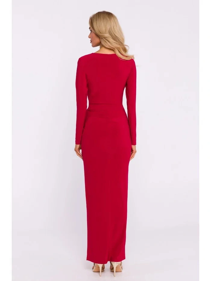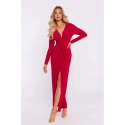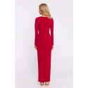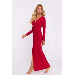 INFORMACE O PRODUKTU: pletenina elastické maxi šaty s uzlem vpředu výstřih ve tvaru V vysoký rozparek vpředu modelující záhyby vzadu skrytý boční zip bez podšívky naše modelka je vysoká 171 cm a nosí velikost S navrženo a vyrobeno v Polsku
