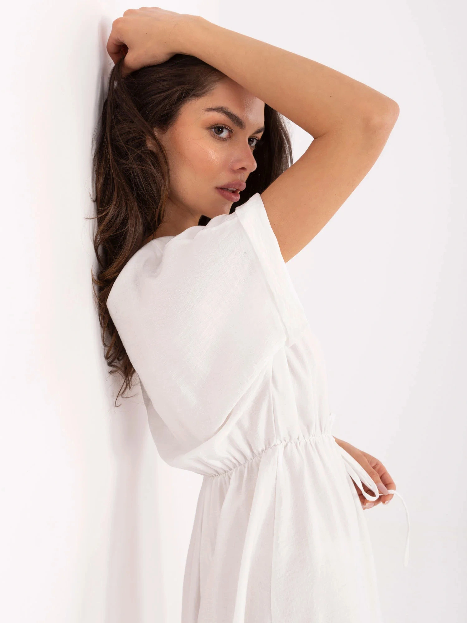 Rozměry šatů v jedné velikosti: šířka v podpaží - 52 cm, šířka v pase - 33 cm (na plocho), šířka v pase - 59 cm (při natažení), délka rukávu - 27 cm, šířka v bocích - 63 cm, celková délka - 106 cm.