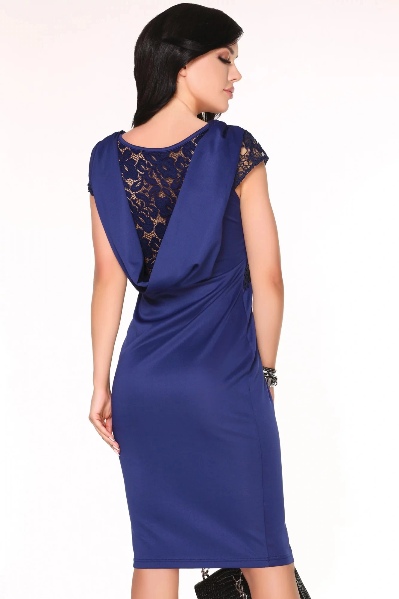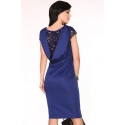 Dámské pouzdrové šaty s krátkým rukávkem, zdobené krajkou, se zajímavým řešením zadního dílu.