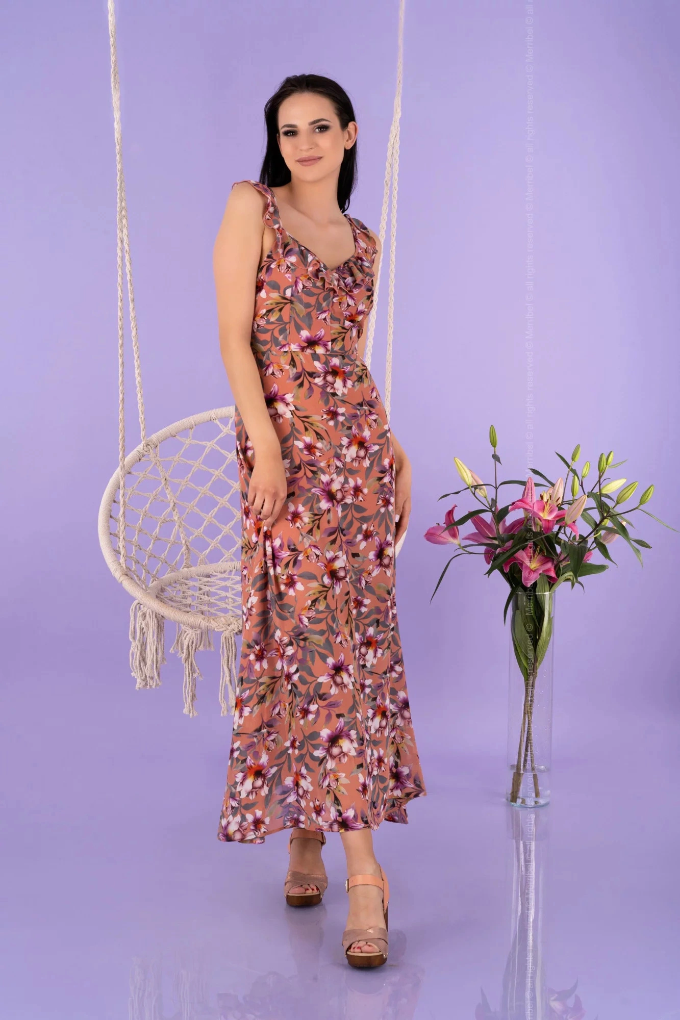 Společenské dámské šaty EVA&LOLA bez rukávů dlouhé růžové - Růžová - EVA&LOLA