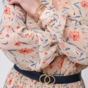 Dlouhé plisované květinové šaty s dlouhými rukávy a nabíranou plisovanou sukní.