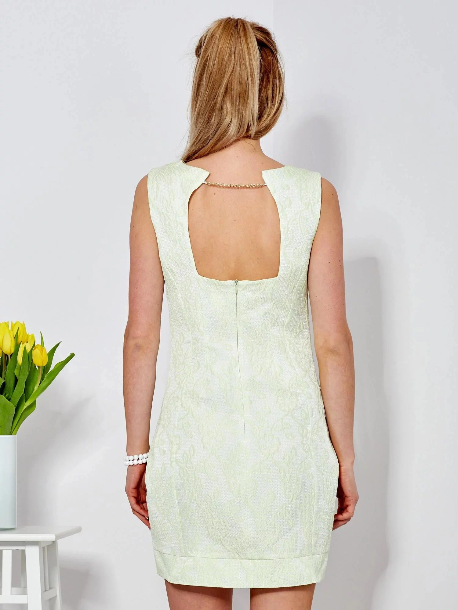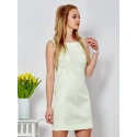 Přiléhavé světle zelené šaty s květinovou texturou.