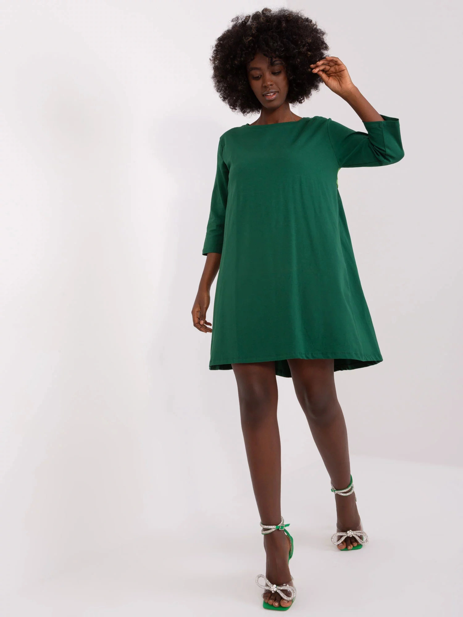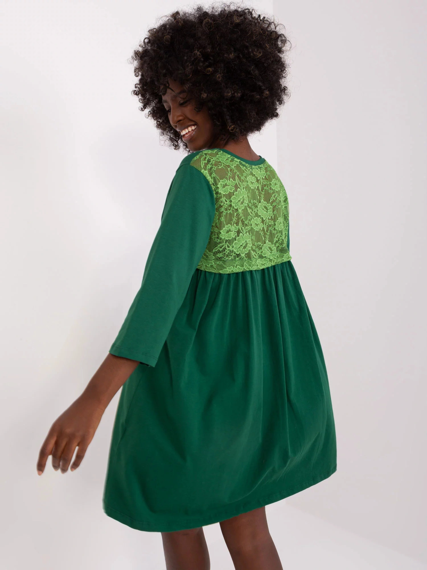Rozměry šatů ve velikosti S/M měřené na plocho: šířka v podpaží - 48 cm, celková délka - 86 cm, délka rukávu - 42 cm.