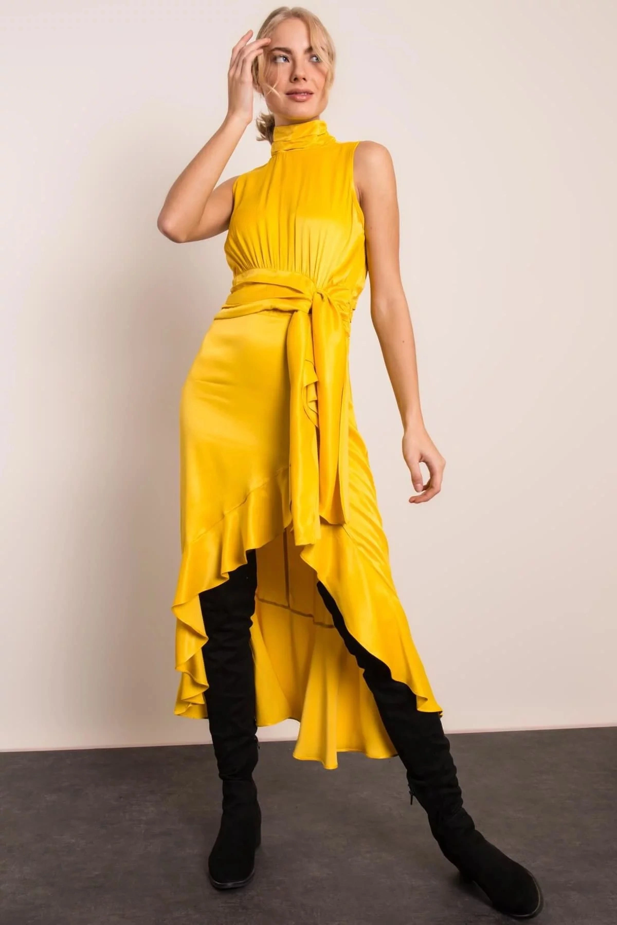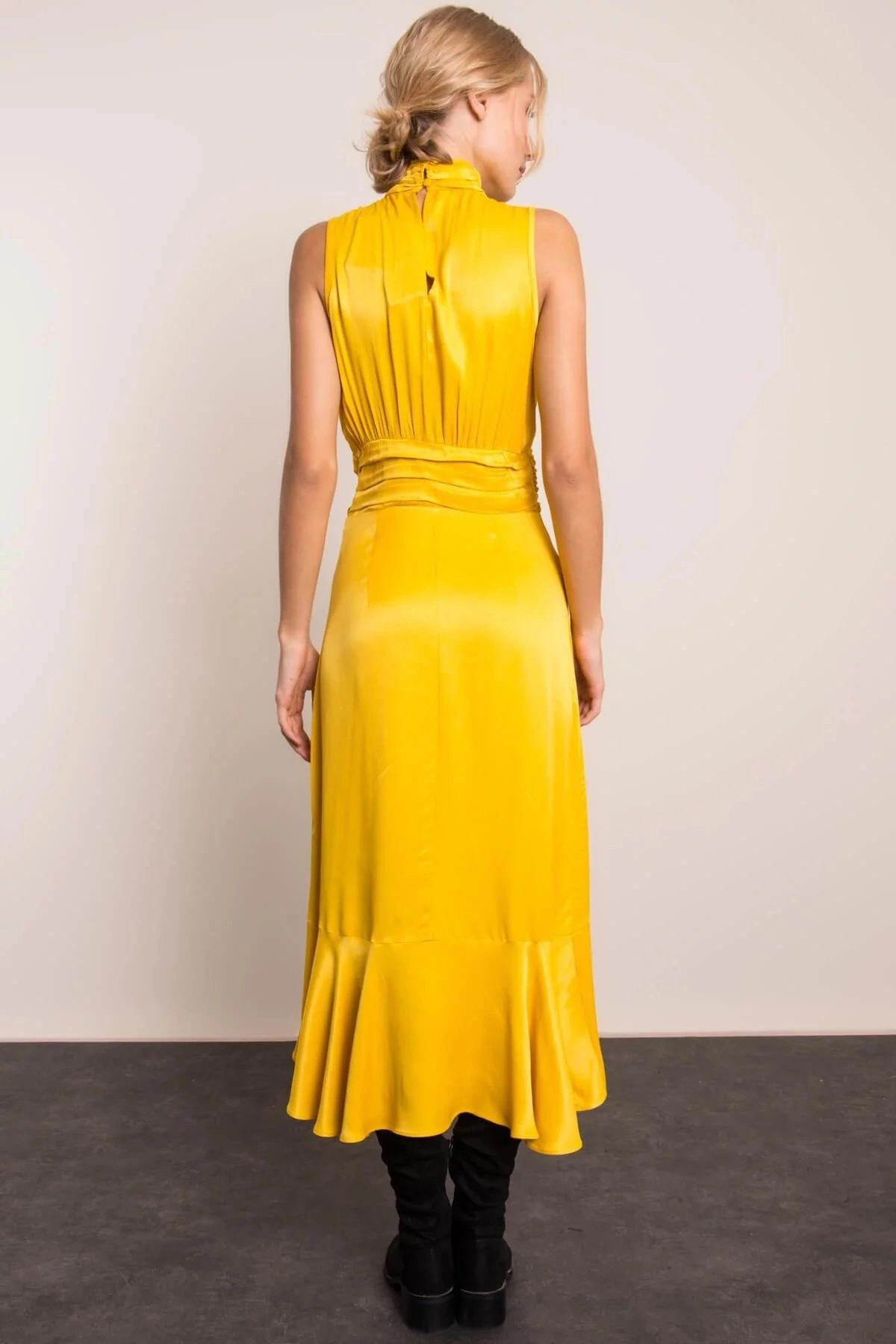 Model má na sobě velikost S.Rozměry modelu: výška 175 cm, poprsí 89 cm, pas 64 cm, boky 92 cm.
