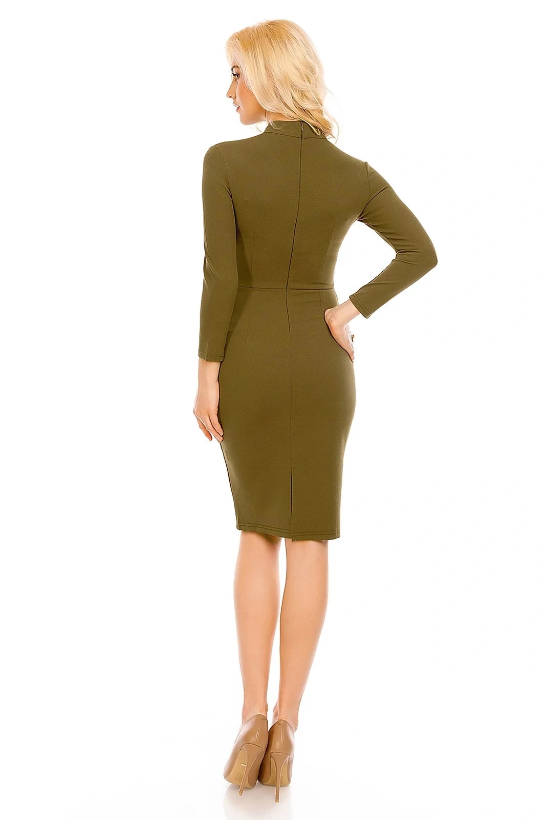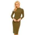 Jednoduché dámské šaty, které by neměly chybět v šatníku žádné ženy. Tento model má dlouhý rukáv a nízký stojáček. Šaty jsou šité na tělo, proto hezky zvýrazní ženské křivky. Zapínání těchto šatů je řešeno v zadní části všitým zipem, který je tak velmi nenápadný a nenarušuje celistvost šatů. Tyto šaty jsou velmi variabilní, obléct si je můžete jak na formální události, tak na běžné nošení. Materiál, ze kterého jsou šaty vyrobeny je elastický a příjemný na omak.