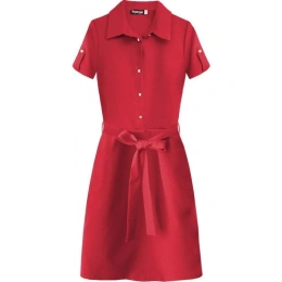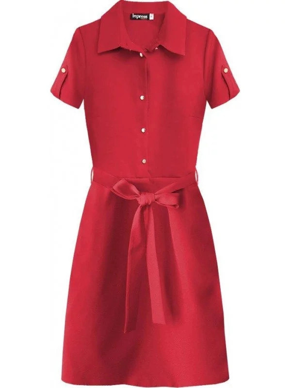 Šaty jsou lehce rozšířené. Vrchní část modelu se zapíná knoflíky. Model se v pase zavazuje páskem, který se táhne v poutcích. Krátké rukávy jsou ozdobené páskem s knoflíkem.