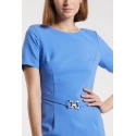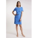Dámské mini šaty v elegantním stylu. Šaty s krátkými rukávy, půlkulatým výstřihem a ozdobným páskem v pase. Šaty se zapínají vzadu na krytý zip. Tento model se jistě uplatní při zvláštních příležitostech. Modelka na obrázku je 177 cm vysoká a má velikost 36.