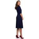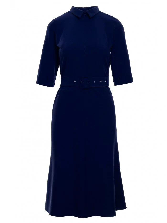 V pase zapínání na pásek se sponou, sukně šikmého střihu a vrchní díl na zip s klasickým límcem - módní oblečení pro společenské akce. PODROBNOSTI O VÝROBKU: šaty z tkané látky s límečkem zapínání na zip uprostřed rukávy v délce k loktům sukně šikmého střihu délka ke kolenům pásek se sponou naše modelka měří 174 cm a nosí velikost S