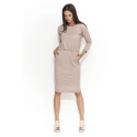 Dámské šaty v horní partii volný střih s dlouhým rukávem, vyrobené z velmi elastického a příjemného materiálu. Šaty je možné aranžovat podkasáním, v pase je guma. Spodní partii tvoří rovně střižená sukně s délkou po kolena. Šaty jsou určené především pro volný čas a běžné nošení, lze je také použít jako tuniku ke kalhotům nebo legínám.