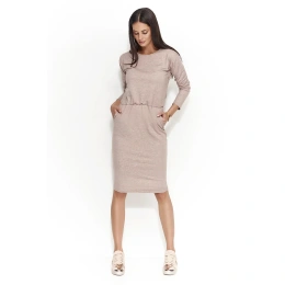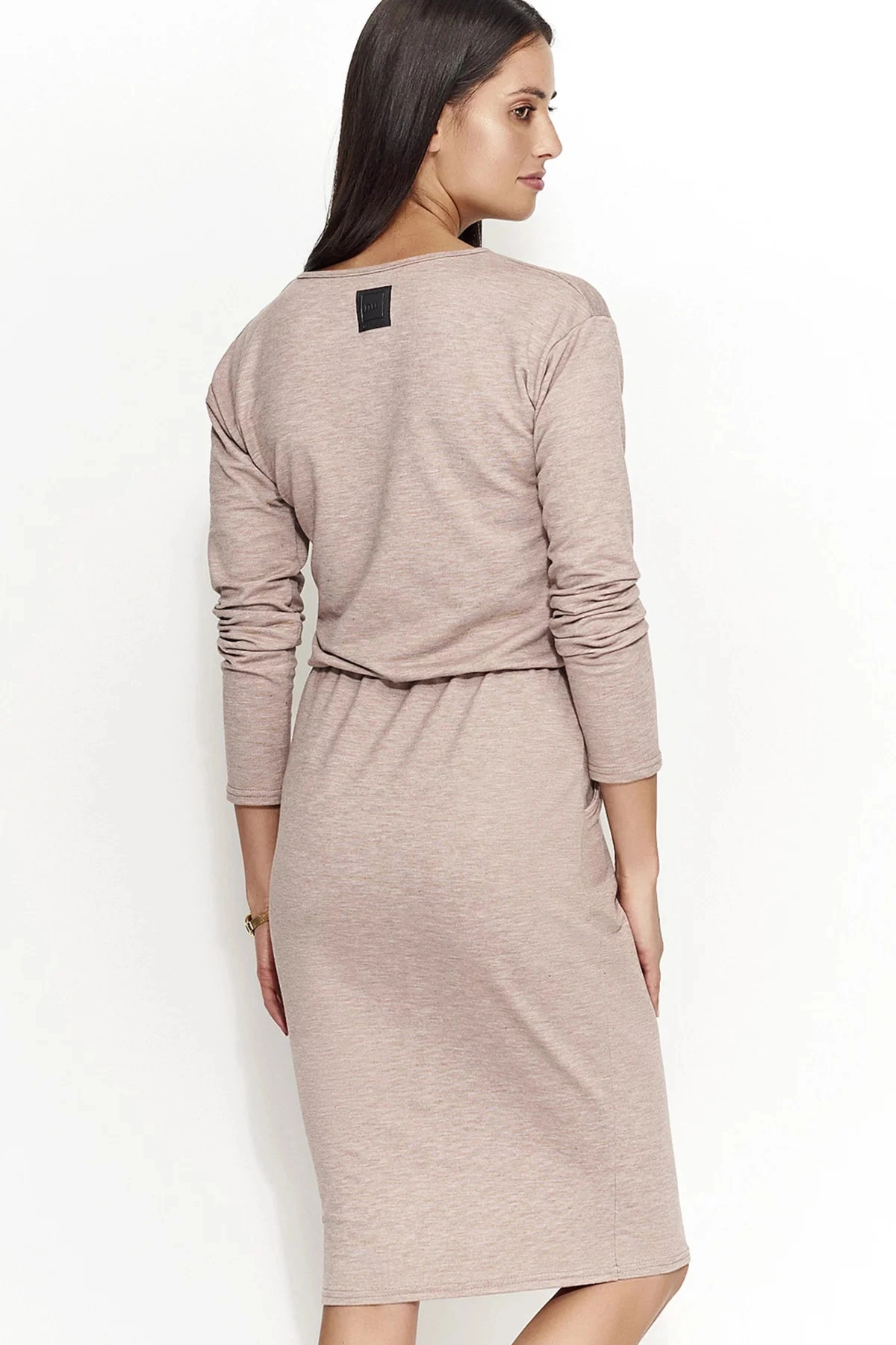 Dámské šaty v horní partii volný střih s dlouhým rukávem, vyrobené z velmi elastického a příjemného materiálu. Šaty je možné aranžovat podkasáním, v pase je guma. Spodní partii tvoří rovně střižená sukně s délkou po kolena. Šaty jsou určené především pro volný čas a běžné nošení, lze je také použít jako tuniku ke kalhotům nebo legínám.