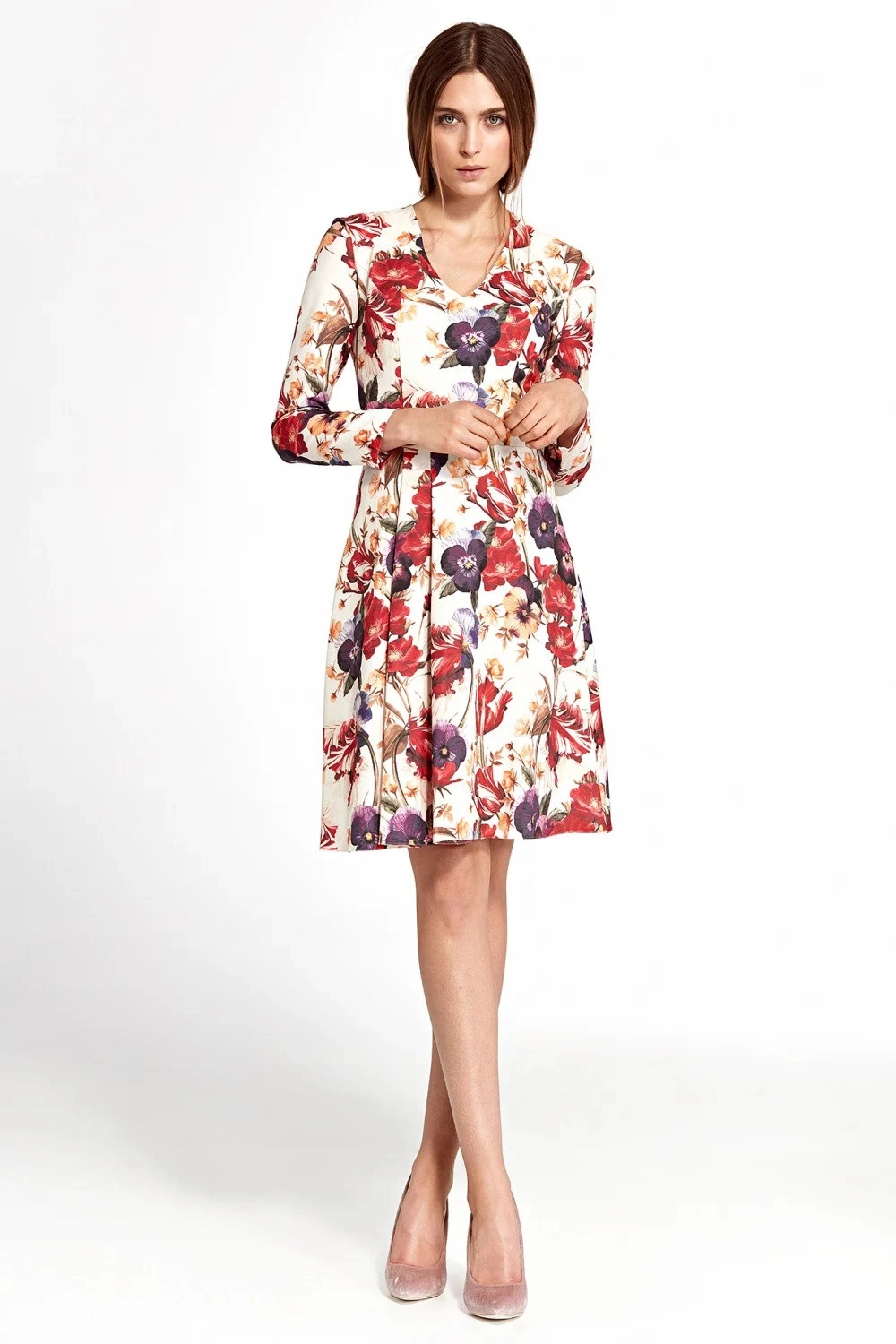 Dámské šaty S109 - Nife ecru s květy 42