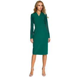 - výstřih do V - dlouhé síťovinové rukávy - délka po kolena - knoflíkové manžety - rozparek na suk