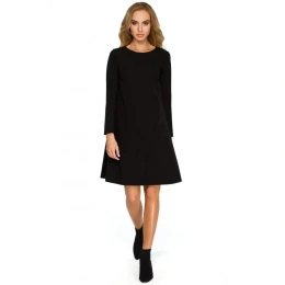 Dámské šaty značkové zdobené v pase knoflíky středně dlouhé černé - Černá - Makadamia