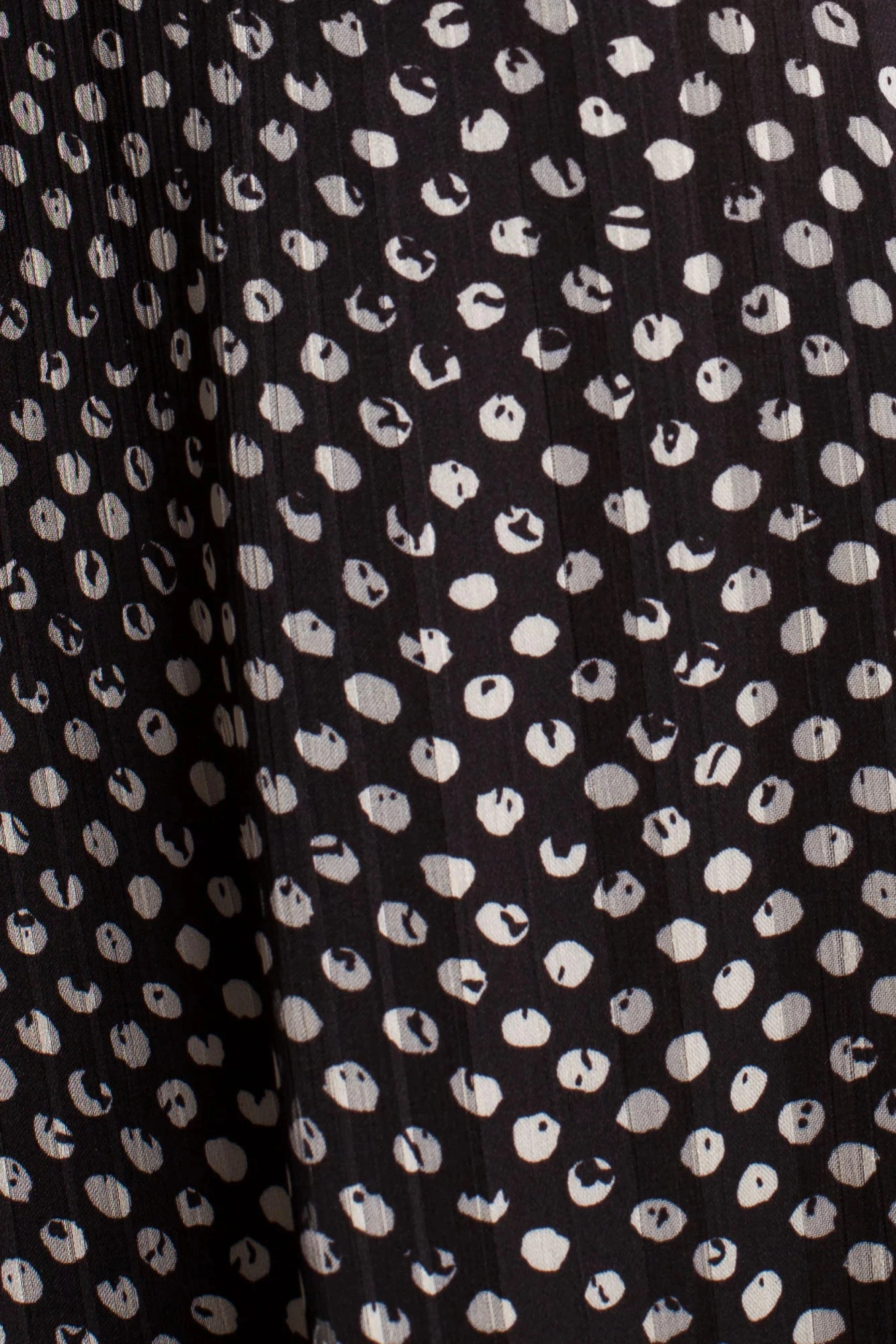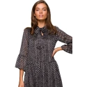 Tyto lehké šifonové šaty jsou celoplošným kouskem. Díky uvolněnému střihu, nepravidelnému potisku s puntíky a zavazování ve výstřihu se stane klasikou pro každodenní nošení po celou sezónu.
