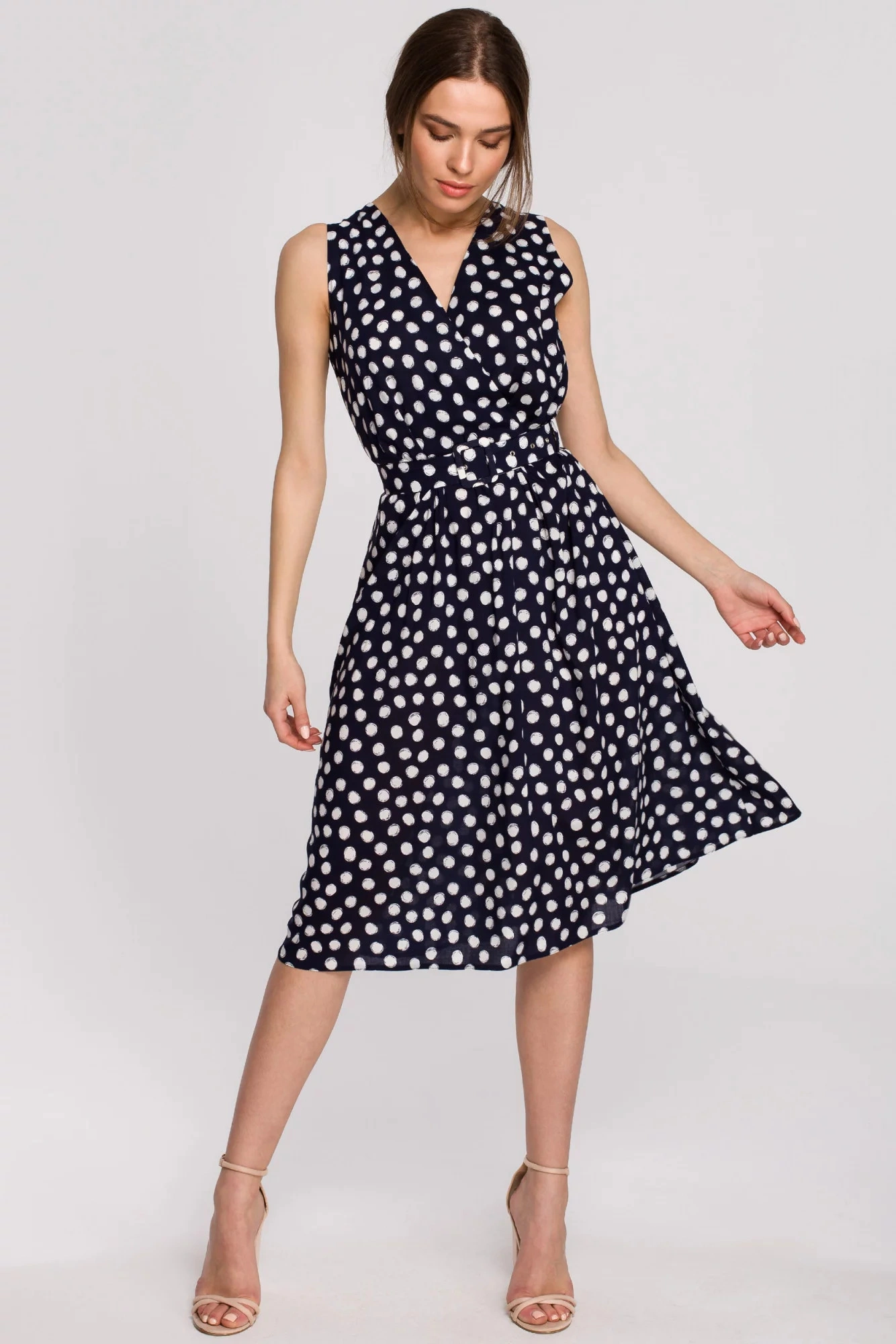 Dámské šaty S264 překládaný vrchní díl rozšířená sukně pod kolena pásek se sponou Materiálové s