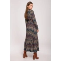 Maximální pohodlí, maximální elegance v podobě maxi šatů s aztéckým potiskem, nařaseným spodním lemem a stojáčkem. Nejlépe se doplňují s vysokými botami.Materiálové složení: 100% viskóza